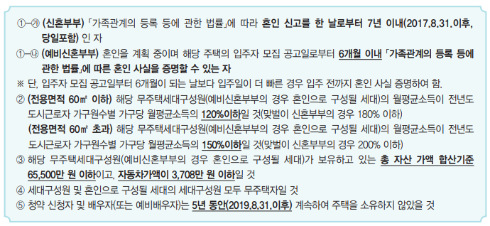 (예 비신혼부부의 경우 혼인으로 구성될 세대원이 무주택자)으로서 아래의 요건을 모두 갖춘 자