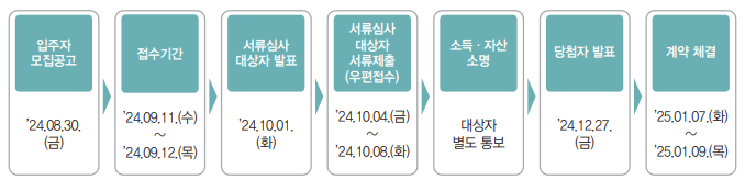 | 방문 청약 | 2024.09.12.(목) 10:00 ~ 17:00 | 서울주택도시공사 1층 공공주택공급부 |
